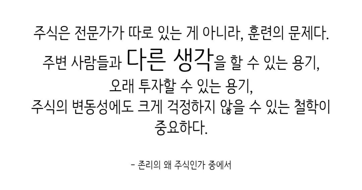 일시적인 것들에 연연하여 투자해야할 최적의 시기를 놓친다면 내 자산은 불어나지 않고 제자리 걸음을 하는 포트폴리오를 보고 실망하게 될 것입니다.