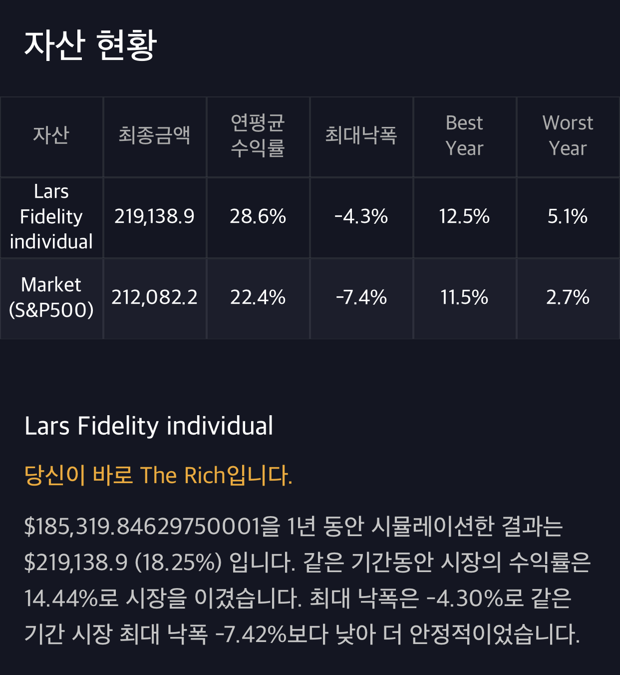 지금까지 많은 자산관리 프로그램을 써봤지만 백테스팅까지 해주는 어플은 처음인것 같습니다.