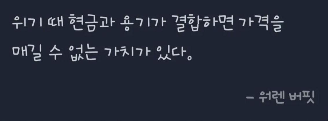 현명한 투자자들과 같이 떨어지는 칼날을 잡아 위기를 기회로 바꾸시기 바랍니다.