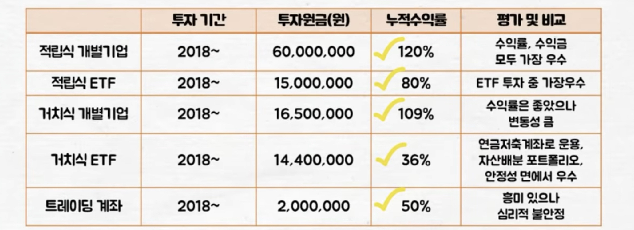 표를 보면 거치식(목돈을 가지고 한번에 투자)투자와 적립식(월정액으로 투자)투자를 2018년 부터 했을 경우 누적 수익률에 대해서 기록해 놓았습니다.