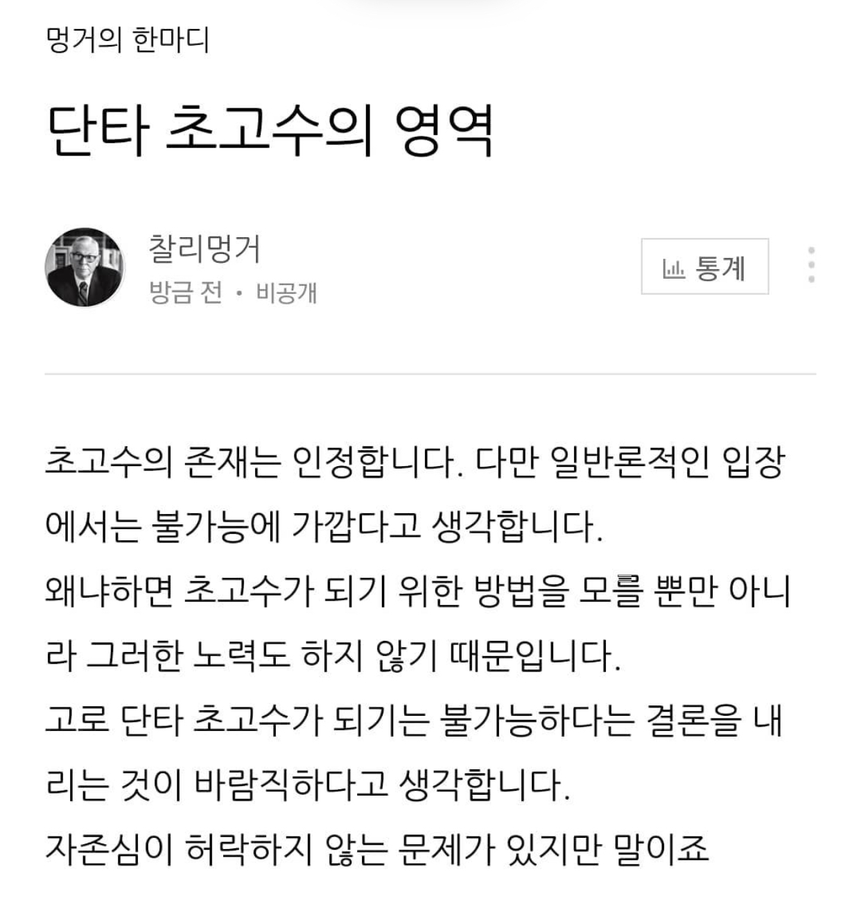 왜냐하면 초고수가 되는 방법은 존재하지도 않을 뿐더러 있지도 않은 존재가 되기 위해 어느 누구도 노력하지도 않기 때문입니다.