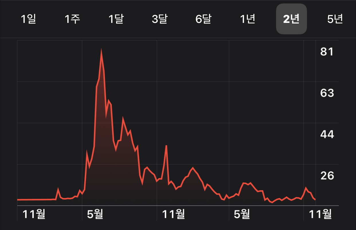 사람들은 이런 급등하는 주식을 보고 너도나도 달려들기 시작합니다. 이렇게 급상승 하는 주식은 반드시 조정이 있거나 급격한 하락이 찾아 옵니다.