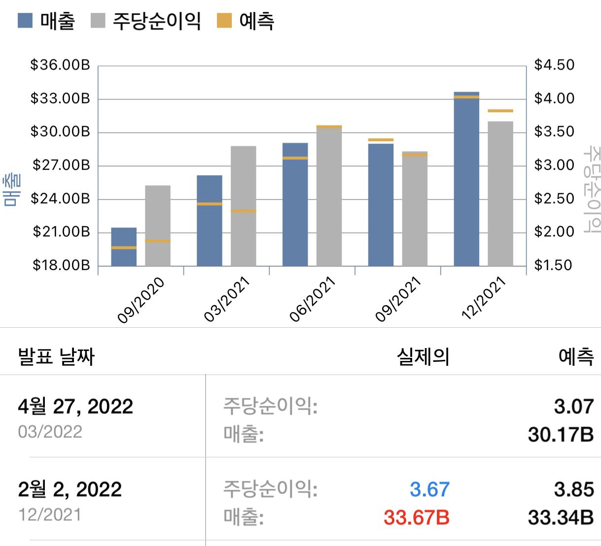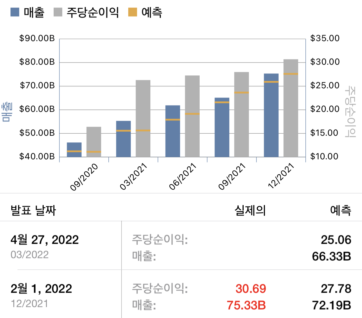 매출이 $75.33 billion이 나왔고 시장의 예상치는 $72.19billion 이었습니다. 시장의 예상치를 뛰어 넘는 결과 였습니다.