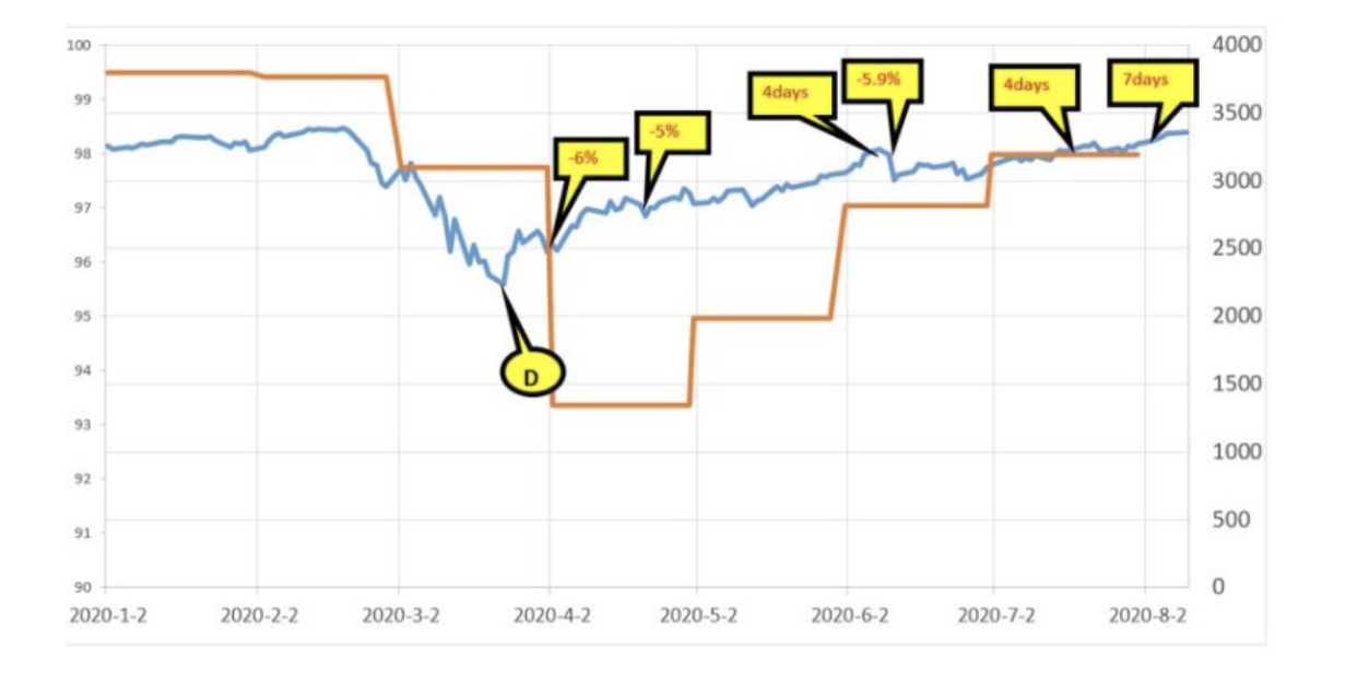 내가 정해 놓은 좋은 기업이나 ETF에 가장 최고 수익률 보다 낮은 가격이 되면 기계적으로 매수를 하는 방법입니다. 그리고 이전 최고 수익률 보다 가격이 올라가면 매수를 멈추는 방식입니다. 이러한 하락장 적립식 매수는 나의 평단가를 낮추어 주고 수익률을 올려주는 가장 큰 대비 역활을 해줍니다.