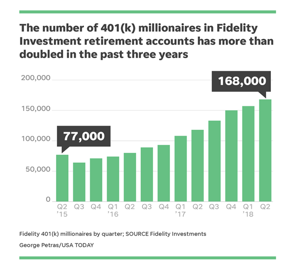 미국의 401K나 IRA 은퇴 플랜을 통해서 계속해서 매년 밀리어네어가 늘어나고 있다는 것을 피델리티 자산운용사의 리서치를 통해서 알 수 있다.