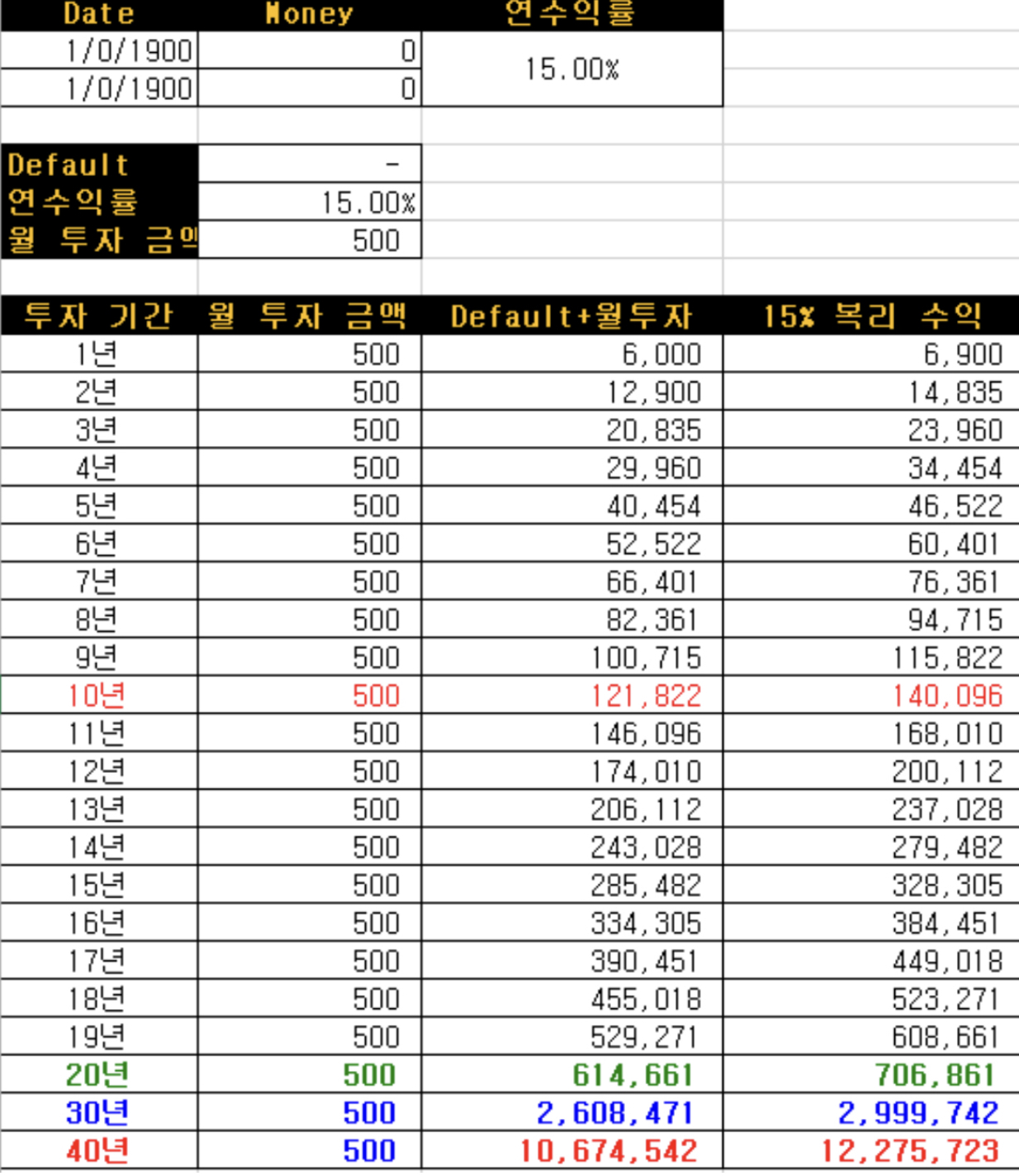 우리는 매달 $500을 적립식으로 은퇴를 위해 넣은 것 뿐인데 이러한 놀라운 결과가 나오는 것이다.
