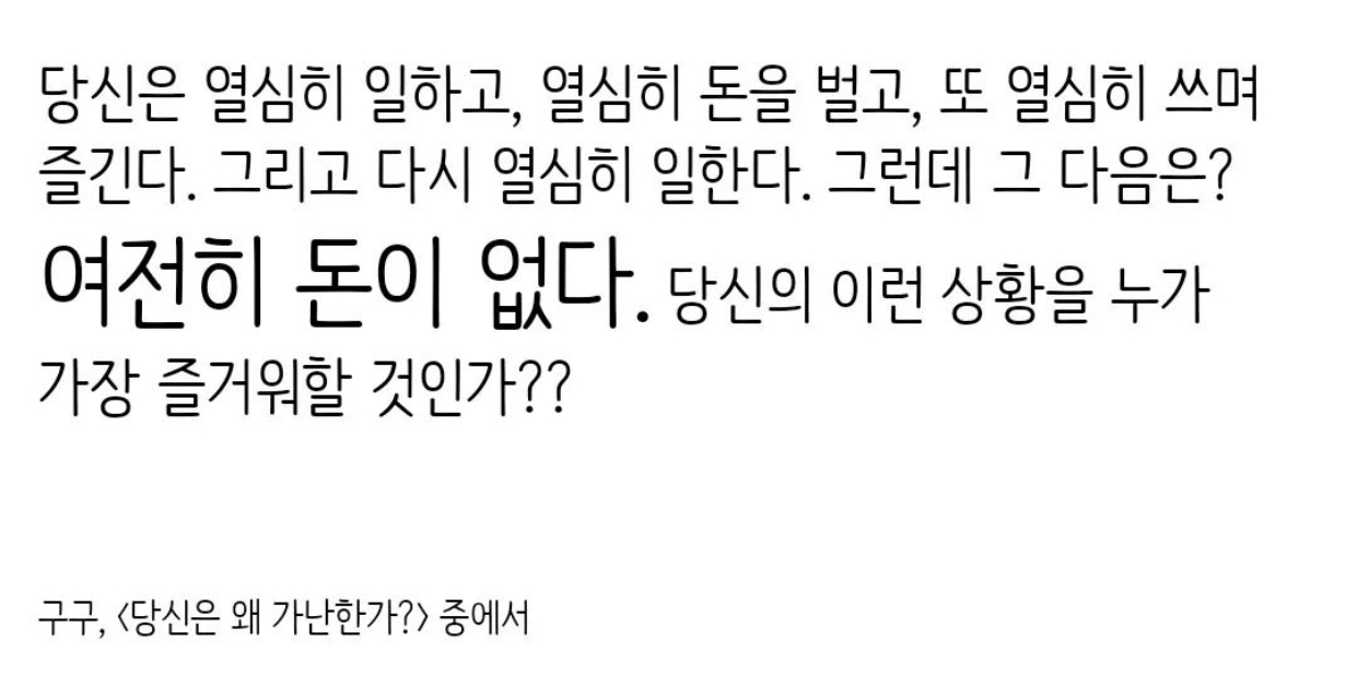 돈이 없으면 우리의 생계가 위협 받기 때문이다.