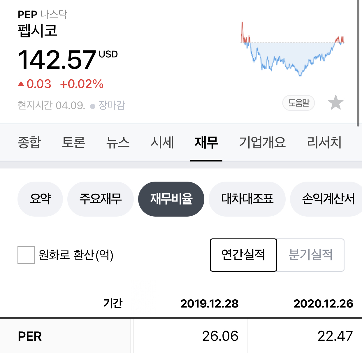 같은 업종의 코카콜라와 펩시를 비교해보니 코카콜라가 PER이 낮은 것을 알수 있습니다.