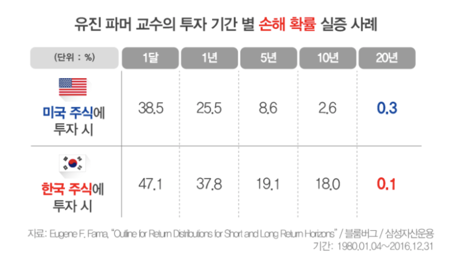 장기 투자는 오래 하면 할수록 손해 볼 확률은 적어 집니다.