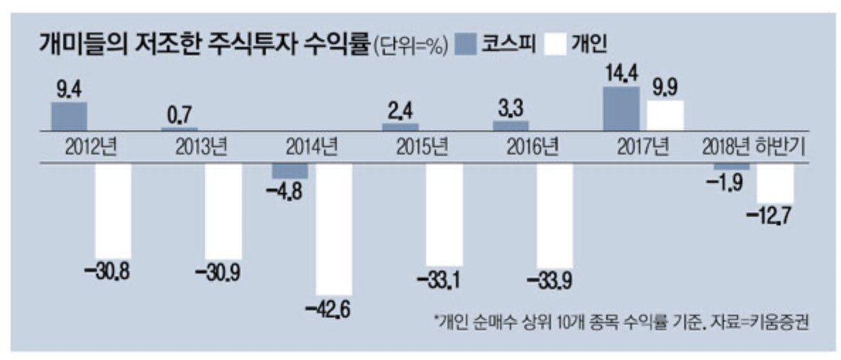 심지어 코스피는 수익이 났음에도 투자자들은 마이너스를 기록 했습니다. 그냥 코스피 지수만 투자했어도 수익이 났을 것인데 단타를 통해서 투기를 했기 때문에 모두 손실을 얻은 것이죠.