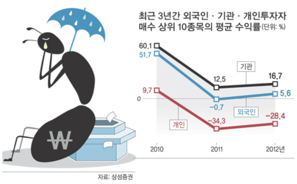 기업을 보고 투자하는 것이 아니라 현재 주식창에 오르고 내리는 주가창을 보고 투자하는 것이죠. 그래서 시장의 움직임에 따라 내 소중한 돈을 집어 넣고 빼면서 소중한 돈을 까먹습니다.