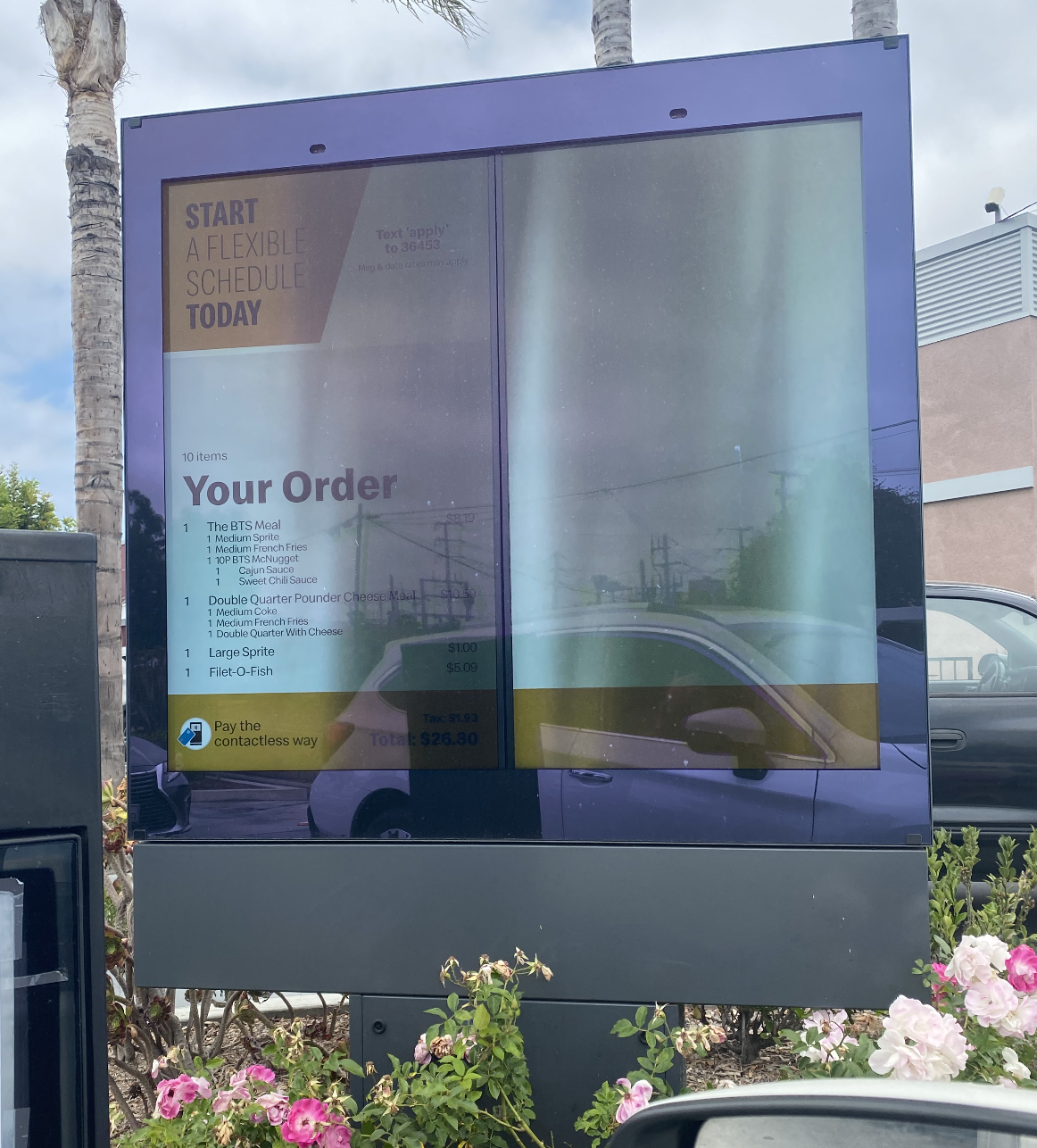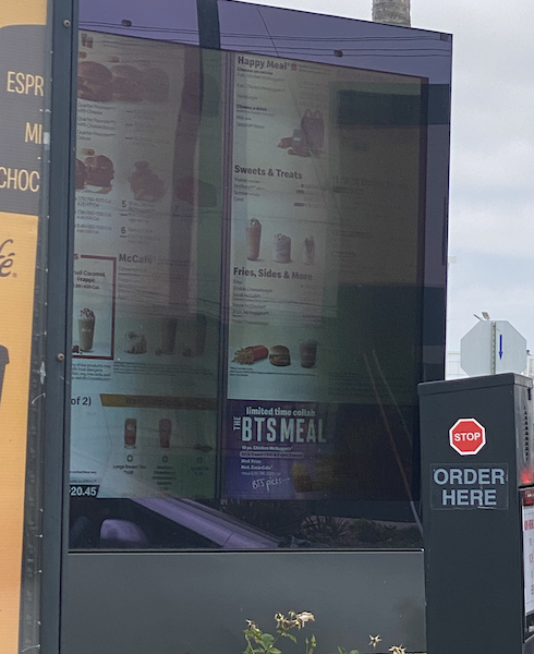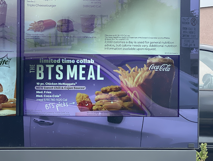 전면 유리에 BTS와 콜라보하는 한정판 Meal이 있다고 광고를 해줍니다.
