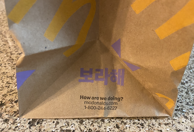 오늘 남편과 함께 맥도널드에 방문하였습니다. 이유는 BTS 때문입니다.