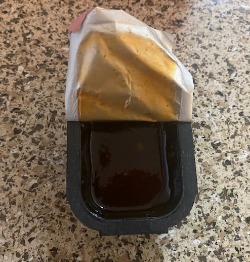 케이준 소스는 머스타드에 치즈가 썩인 맛이었습니다. BTS 멤버들이 직접 고른 소스라고 하던데 한국에서 유행하는 뿌링클 치킨처럼 치즈를 맛이나는 머스타스 소스라는 생각이 들었습니다. 맛도 생각보다 좋았습니다.
