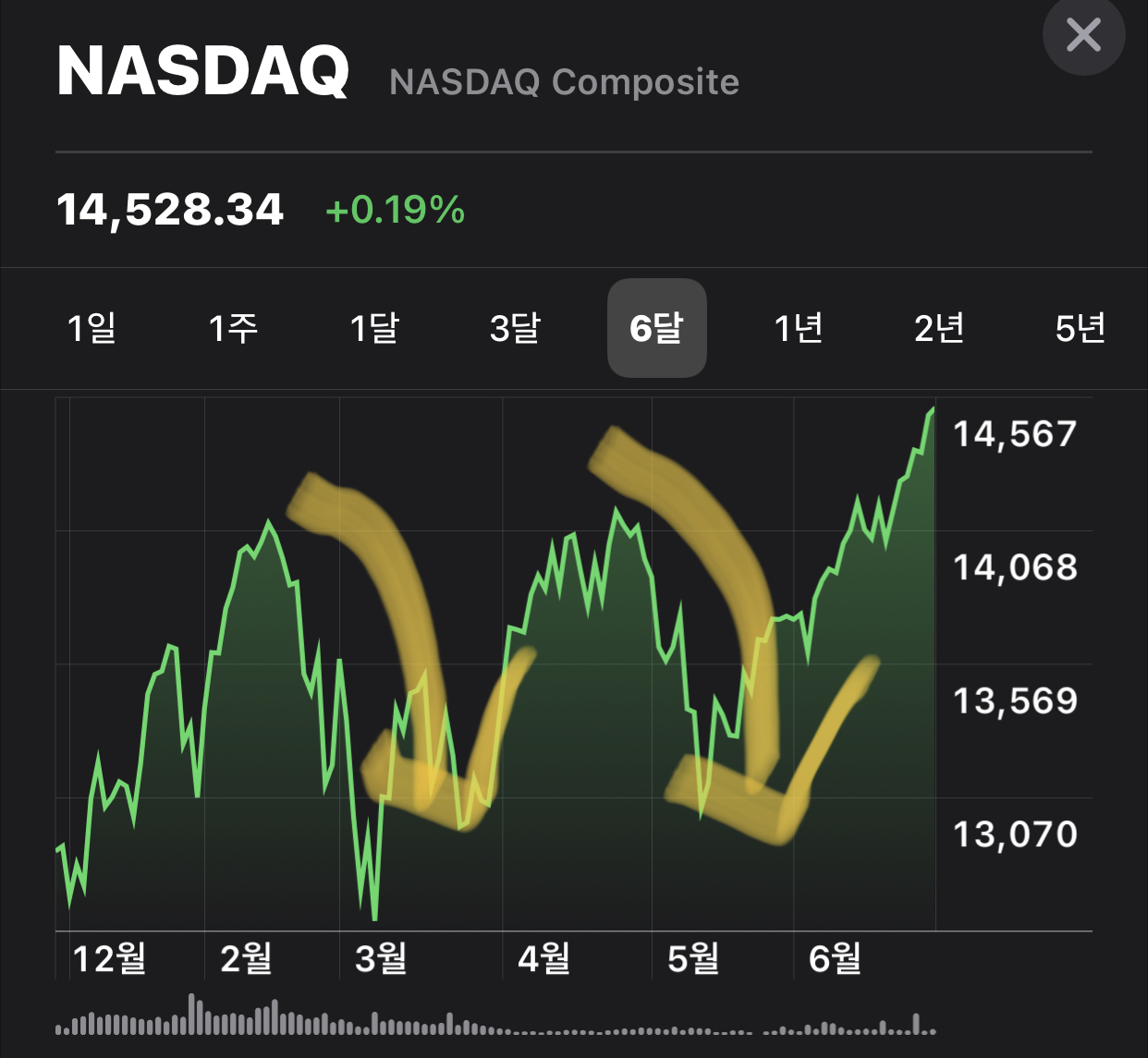 나스닥과 S&P500 지수는 신고가를 뚫어 버리고 연일 신기록을 갈아치우고 있습니다.
