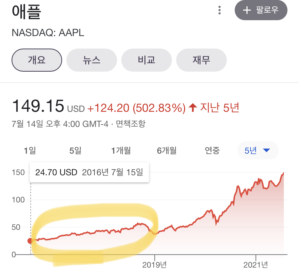 애플은 2016년 부터 2018년 까지 매수해서 500%의 수익률을 올리며 300억 달러의 수익을 안겨주었고
