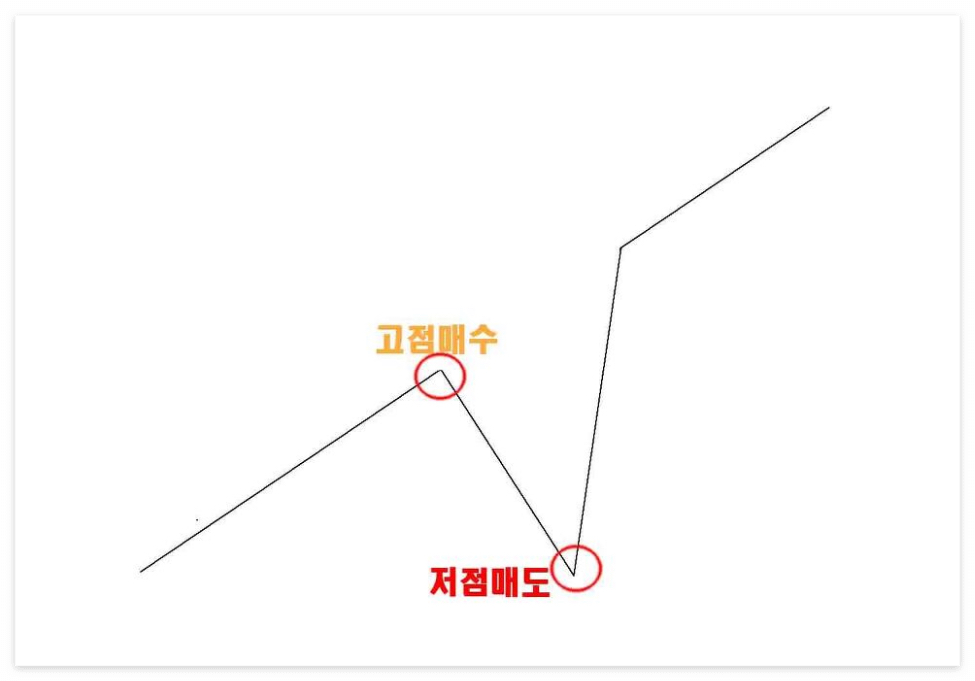 저점에서 팔고 고점에서 사는 투자의 핵심과는 반대로 저점에서 팔고 고점에서 사는 정반대의 잘못된 투자를 하게 되는 것입니다.
